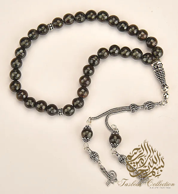 شرابة هذه المسبحة مصنوعة من الفضة الإسترلينية عيار 925، مما يضفي عليها لمسة من الأناقة والفخامة. بوزن إجمالي يبلغ 52.00 جرام ± 1، هذه المسبحة مثالية لحملها معك أينما ذهبت.