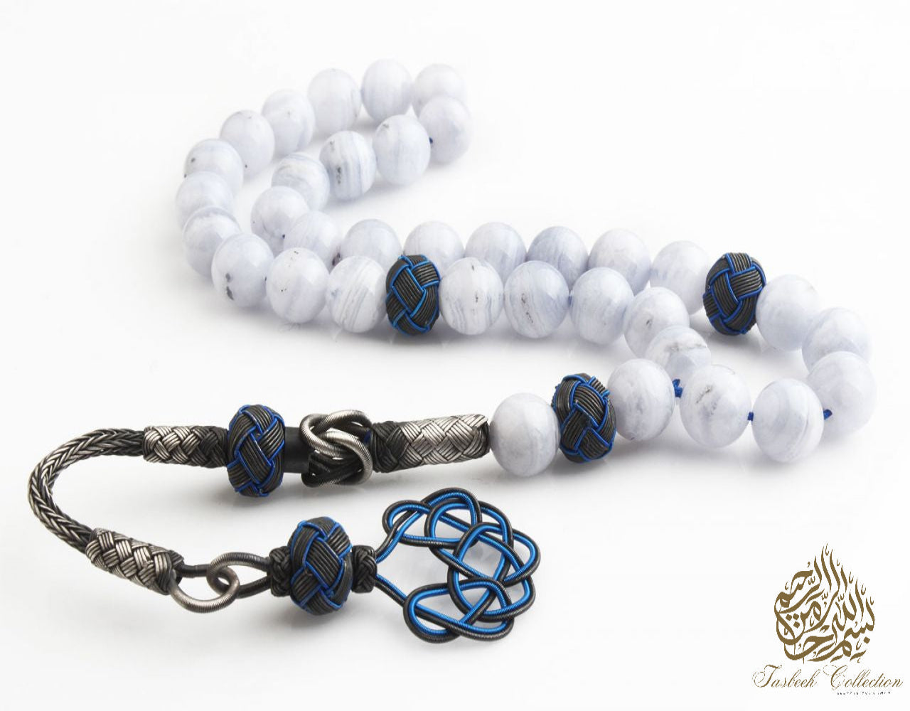 مسبحة حجر الكالسيدوني بشراشيب كازاز فضية