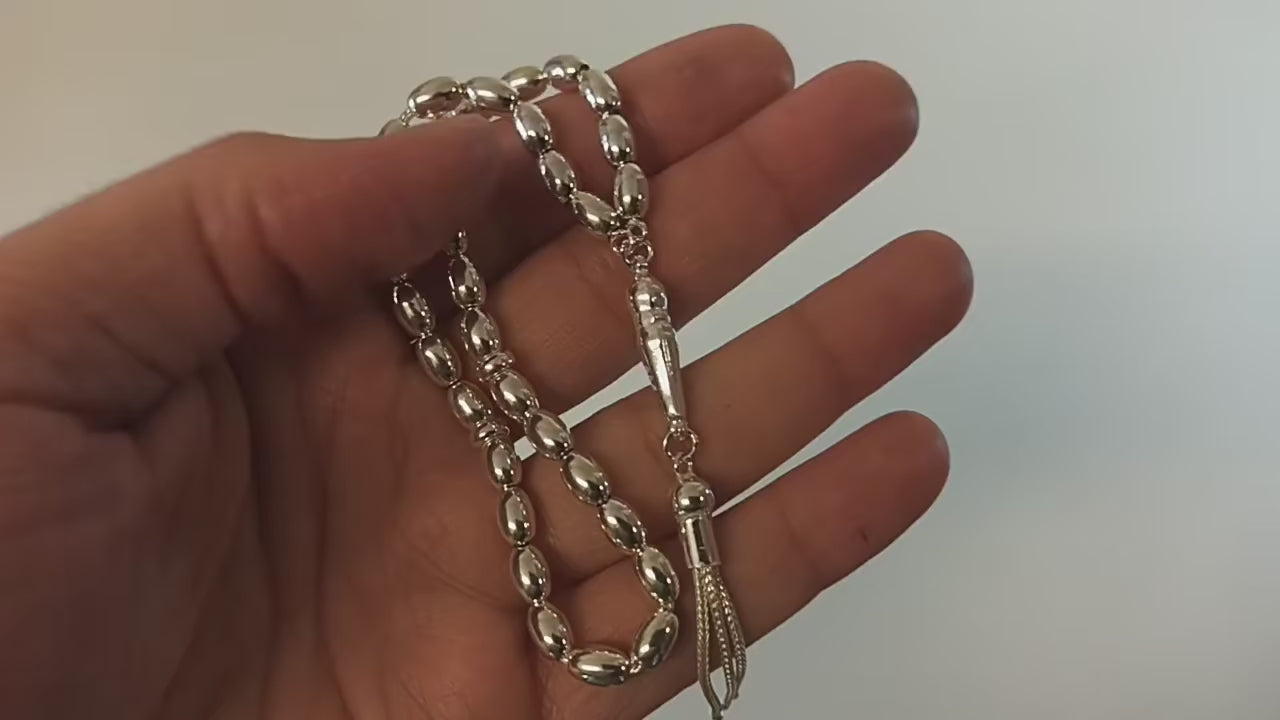 Indulge in the ultimate luxury with our premium collection of handcrafted tasbihs made in Istanbul, Turkey by skilled artisans. Each tasbih is carefully crafted with 925 sterling silver beads, giving it a stunning shine and durability. The oval-shaped beads measure 8mm x 5mm, providing a comfortable grip while reciting your prayers.