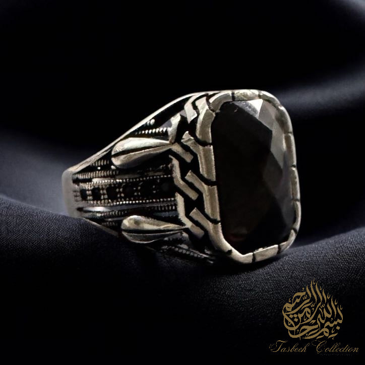 Black Natural Zircon Stone Premium 925 Silver Ring