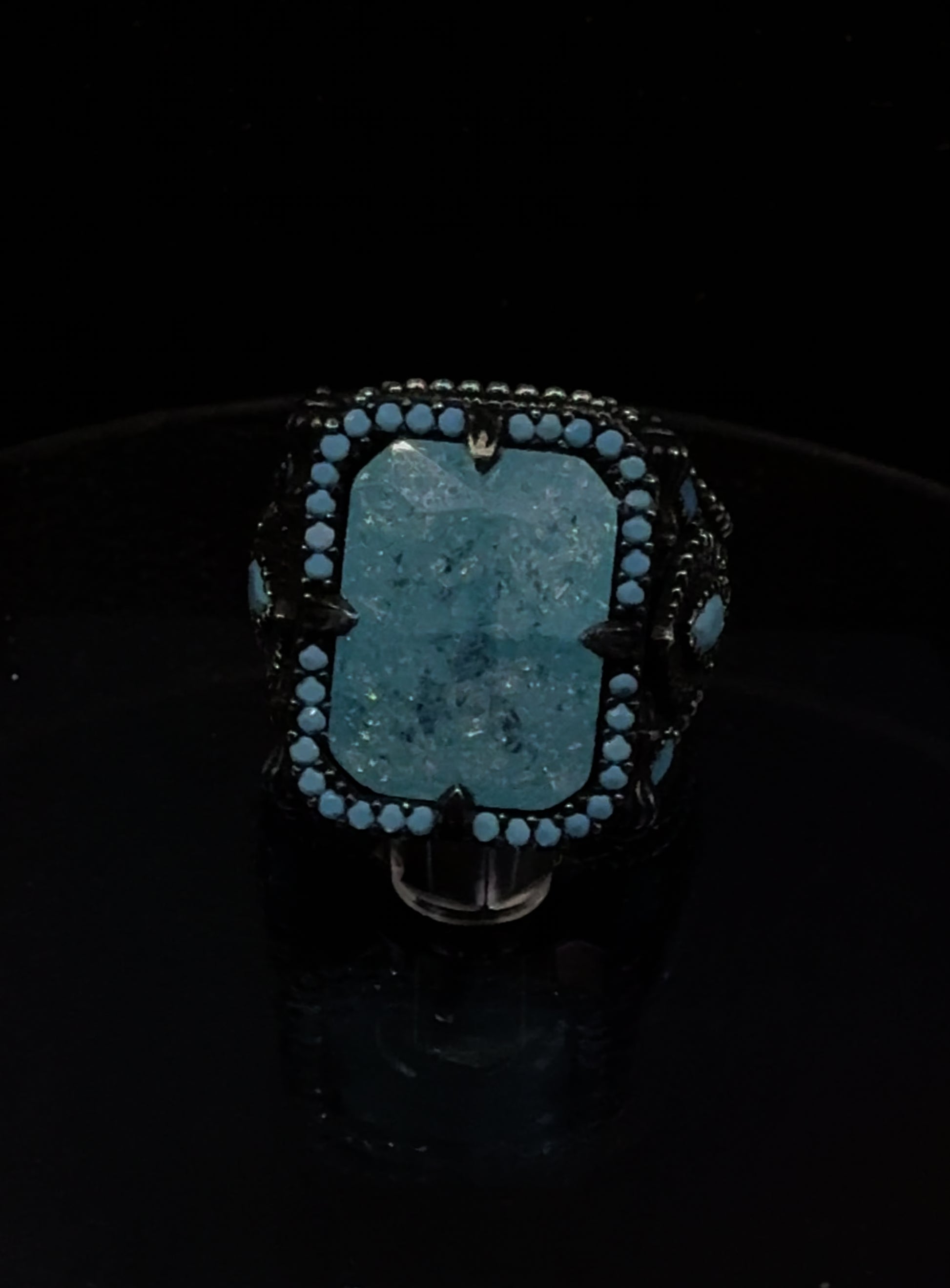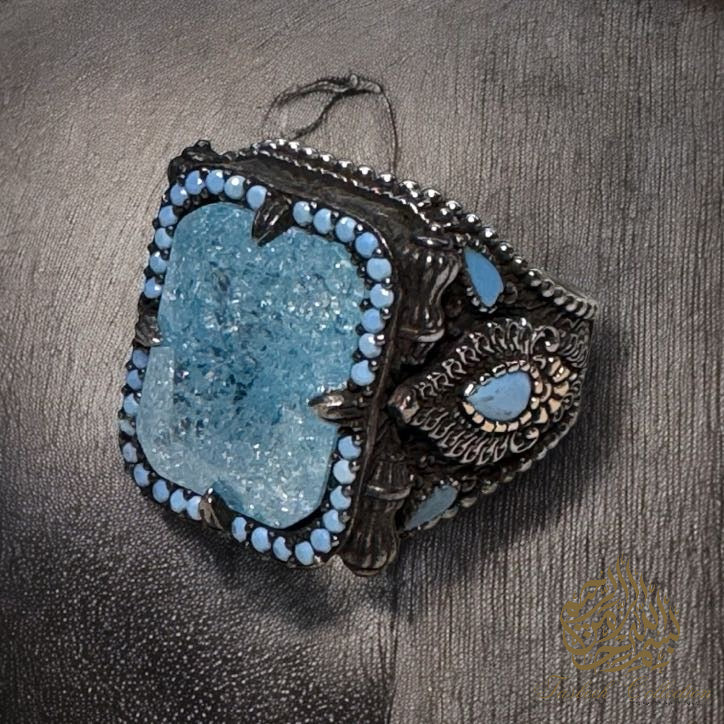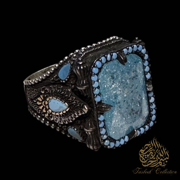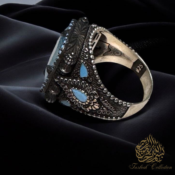 Blue Topaz with Turquoise Premium 925 Silver Ring