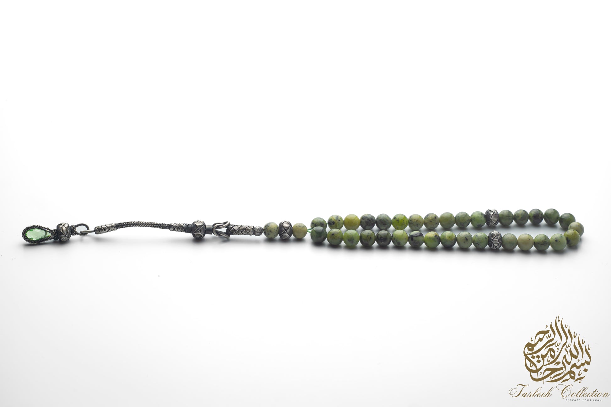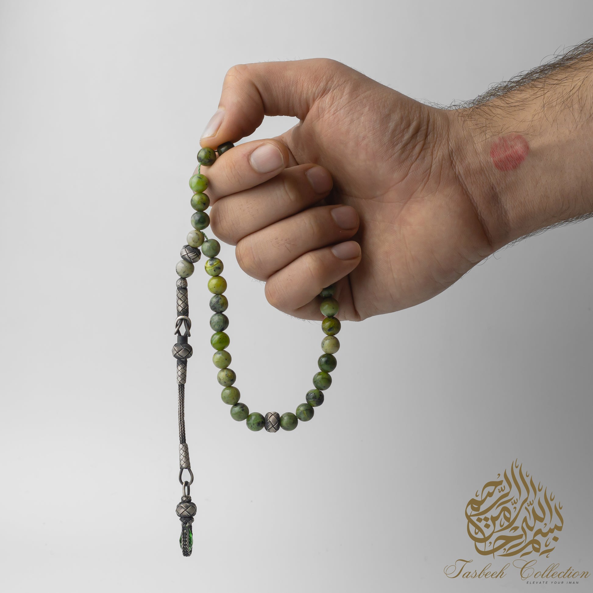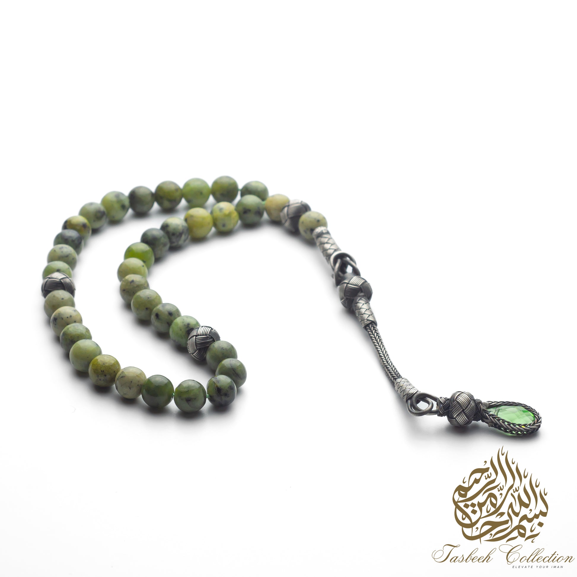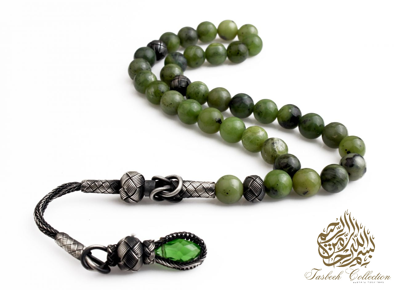 Canadian Jade Rosary Tasbih with 925 Sterling Silver Kazaz Tassel