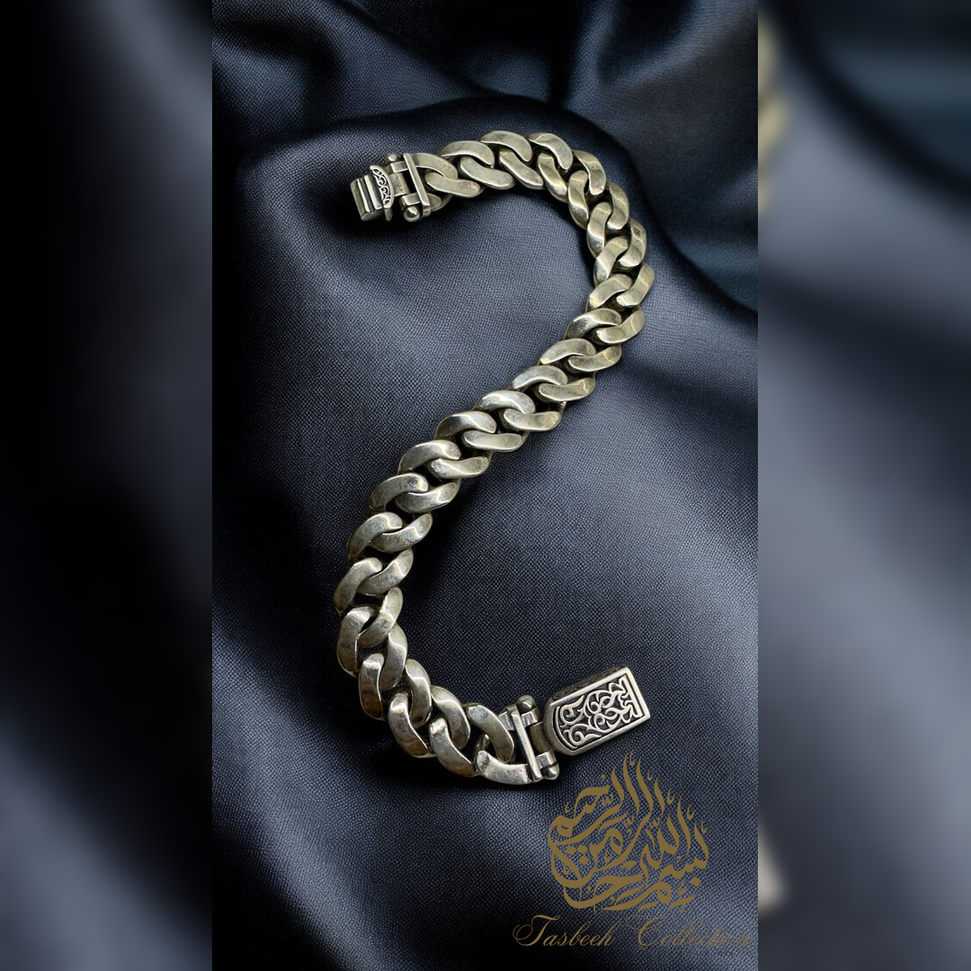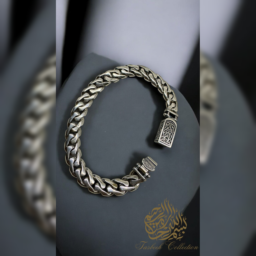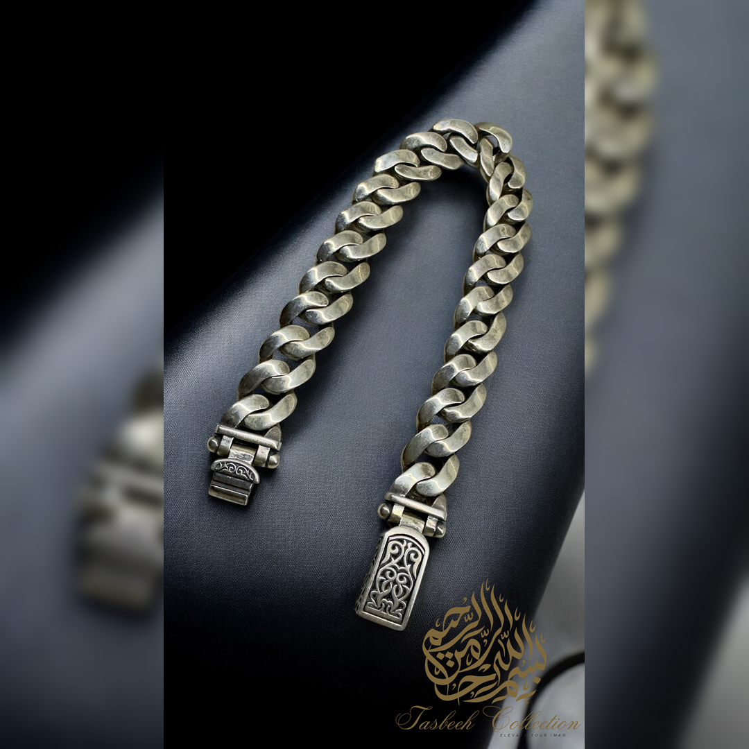 Sterling Silver Cuban Bracelet with Engraved Link