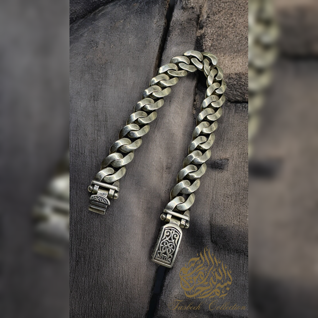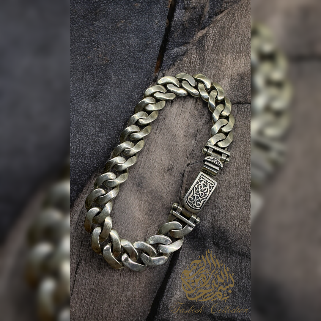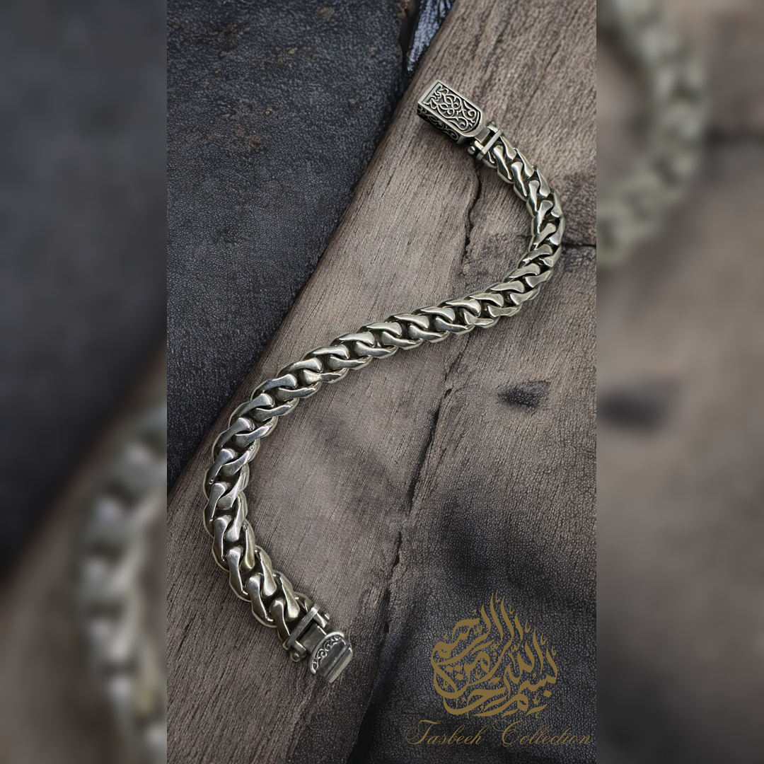 Sterling Silver Cuban Bracelet with Engraved Link