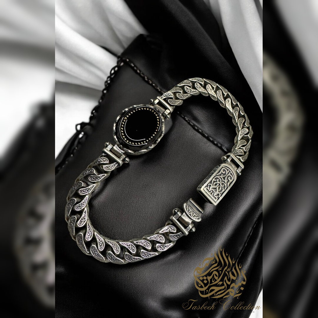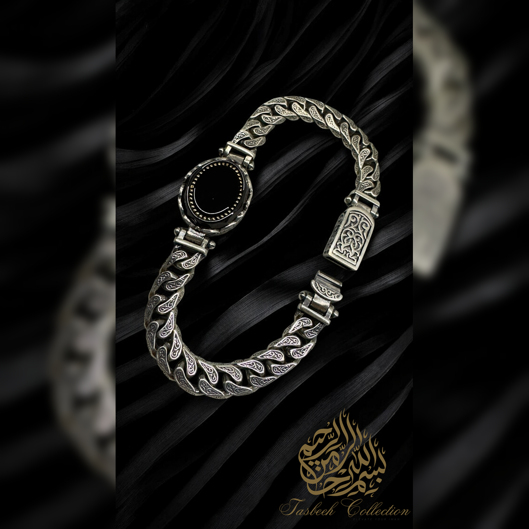 Sterling Silver Cuban Bracelet with Onyx Stone