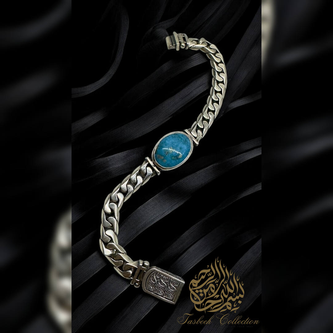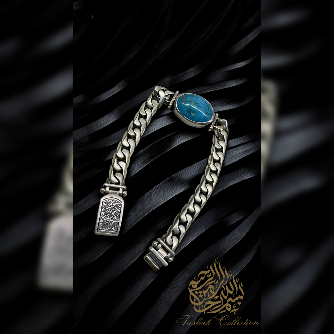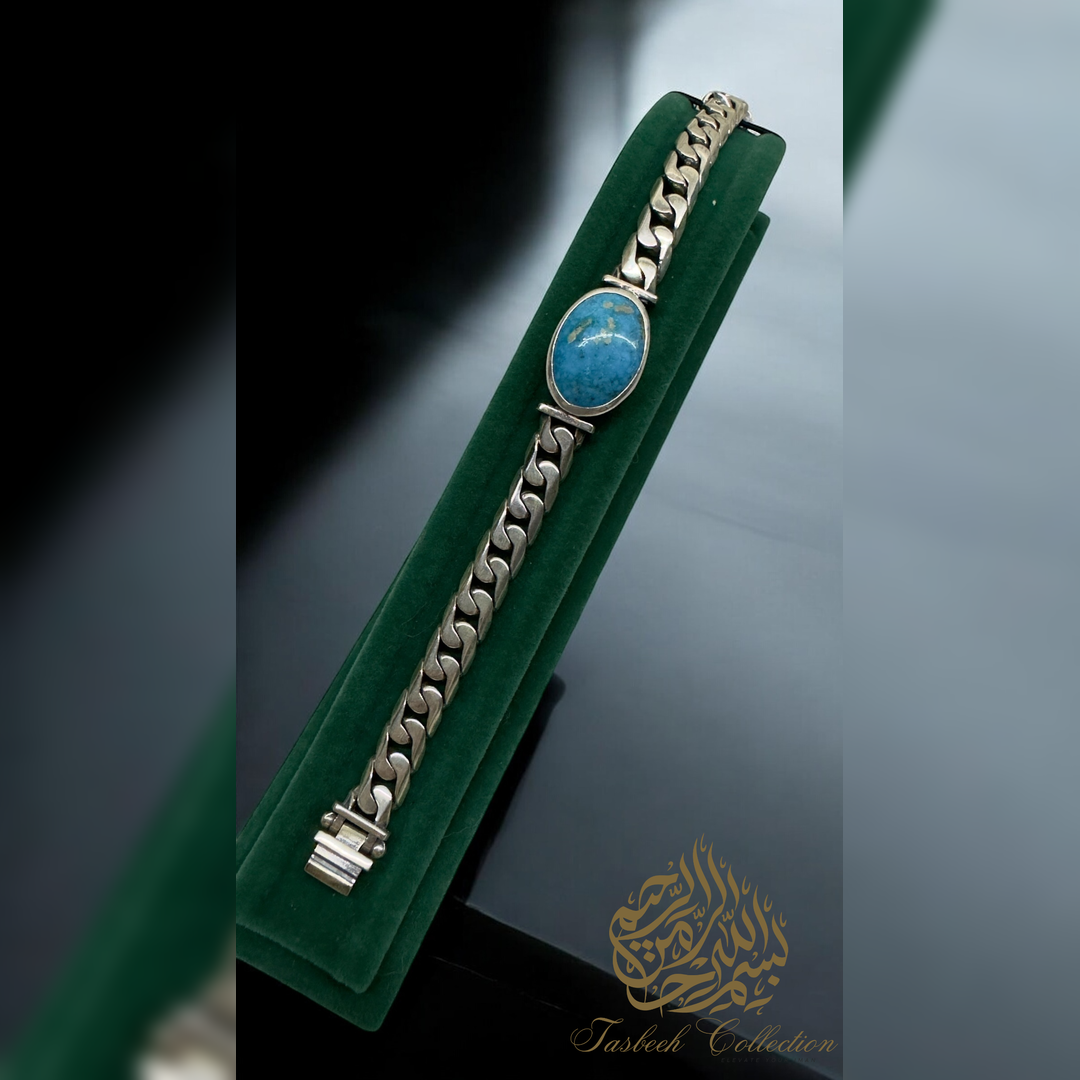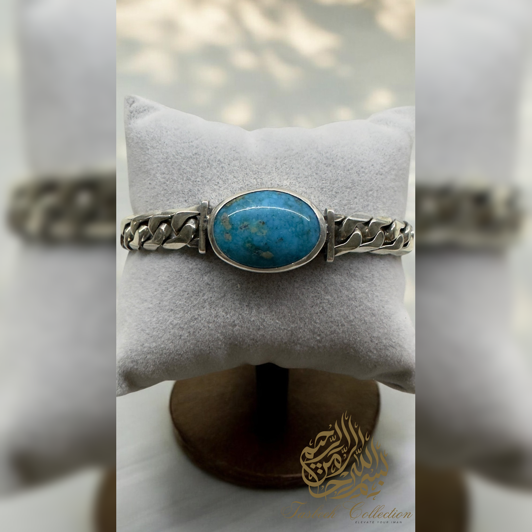 Sterling Silver Cuban Bracelet with Turquoise Stone