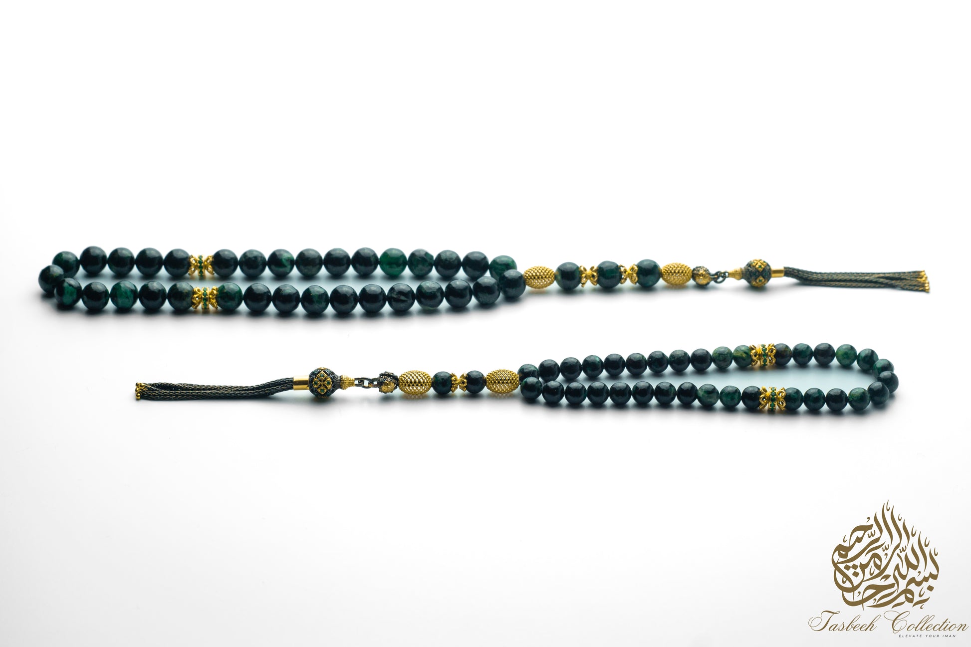 Zarafet - Father & Son Tasbih Set – African Emerald & Gold-Plated Sterling Silver - Limited Edition